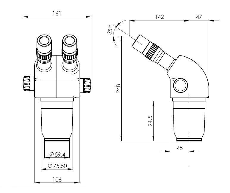 瞳距調(diào)節(jié)范圍(用10X目鏡)